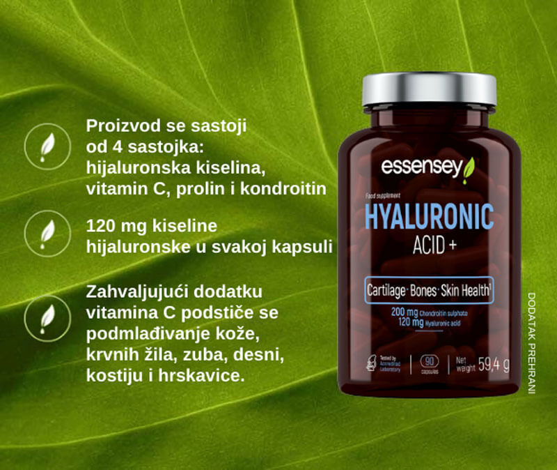 Kiselina hialuronska je popularna komponenta u kozmetici zbog svog hidrofilnog karaktera. Prirodno se nalazi u ljudskom tijelu, ali sa starenjem može se smanjivati njena količina. Nalazi se, na primjer, u zglobovima, zidovima krvnih sudova i koži.