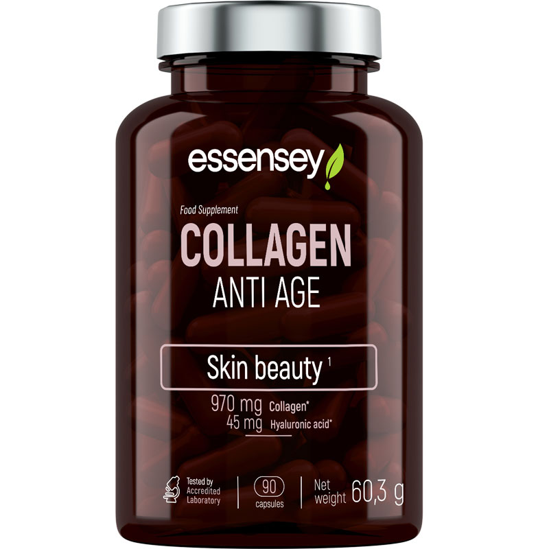 • Essensey Collagen Anti-Age: Dijetetski suplement koji kombinuje hidrolizirani kolagen tipa I SOLUGEL®, hijaluronsku kiselinu i vitamin C.